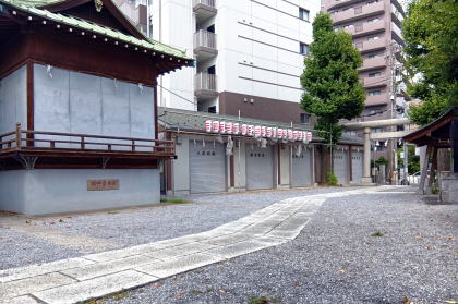 長 浦 神 社 鎮座の由来・年代ともに不明である。祭神は神皇産霊神・ 登由宇気神で、明治7年(1874)に蓮花寺に合して廃寺 となった真光寺の境内にあった稲荷神社を合殿としてい る。この稲荷社は、安産稲荷と呼ばれて崇敬が厚い。 (「墨田区史」より) お祭りには沢山の屋台が出て大変な賑わいです。 年末には除夜の鐘を合図にうどんが振る舞われます。 住 所 / 東京都墨田区東向島6-27-7 |