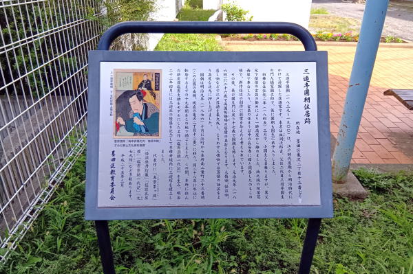 ![]() 三 遊 亭 圓 朝 住 居 跡 所在地 墨田区亀沢二丁目十三番七号 三遊亭圓朝(一八三九~一九〇〇)は、江戸時代後期から明治時代にかけて活躍 した落語家です。本名は出渕次郎吉。父は二代目三遊亭圓生の門人橘家 圓太郎で、後に圓朝も圓生に弟子入りしました。初舞台は弘化二年(一八四五) 三月で、小圓太と名乗りますが、異父兄で僧侶の玄昌の勧めにより一時高座から 離れました。池之端の紙屋葛西屋で奉公したり、玄昌の住まう谷中の長安寺に母と 同居したのもこの頃で、新作怪談の創作に影響を与えたと考えられています。 その後、再び圓生門に戻り十七歳で圓朝を称します。元治元年(一八六四)に 二十六歳で両国垢離場の昼席の真打となります。人情噺、怪談噺、落し噺 などで江戸落語を集大成し、とりわけ人情噺では落語の話芸をより高度な次元に 押し上げました。圓朝は明治九年(一八七六)十月に浜町から本所南二葉町二十三番地 (この公園の南側、現在の亀沢二丁目十二番)に移り、同二十八年に牛込に転居 するまでの十九年間をこの地で過ごしました。この間、本所に住んだ薪炭商塩原太助 をモデルにした名作『塩原多助一代記』を生み、明治二十二年四月には三遊派の隆盛 を記念して木母寺境内に三遊塚を建立しました。代表作に「真景累ヶ淵」 「怪談牡丹灯籠」「怪談乳房榎」「塩原多助一代記」「文七元結」など 多数あります。 平成二十五年三月 墨田区教育委員会」 |