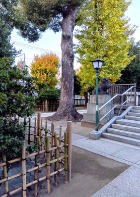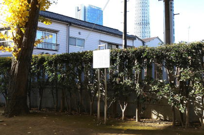 ![]() 飛木稲荷神社のいちょう 所在 墨田区押上二丁目三十九番六号 飛木稲荷神社内 神社の名前に由来する御神木で、目通り約四・八メートルもあり、樹齢も五、六百年は くだらない区内随一の大木です。戦災で一部が焼失し、樹高も十五メートルと低いが、 近年いきおいを盛り返し、樹形も整ってきています。江戸時代以前、このあたりは利根川 (瀬替以前)の川口で、川の運ぶ堆積物により陸地化が進んできたところです。葛西地域 の西の海岸線の一部となっており、平安・鎌倉時代あたりから、後の本所・向島の境とも なる古川沿いに自然堤防となっていたと推定されます。江戸時代この辺は寺島新田と呼ば れ、順次開拓されていく様子もうかがえます。このいちょうの大木は、その自然堤防に 育った歴史の証しといえます。 平成三年三月 墨 田 区 飛木稲荷神社の縁起と由来について 〇鎮座地 東京都墨田区押上二丁目 〇祭 神 宇迦之御霊神 一般に「おいなりさん」と言われ親しまれている神様で農工・殖産・生活の加護に 働きのある神様であります。 〇神 木 いちょう 樹齢千年をこえると言われ、戦火 (昭和二十年三月九日)により、損傷を受けましたが、 ご覧のように元気に繁茂しております。古老の言い伝えによれば、大昔のある時、 暴風雨の際、どこからかいちょうの枝が飛んで来て、この地に刺さったとのことです。 そしていつの間にか 亭亭とそびえたので、時の人が、これは異状のことであるとして、稲荷神社をお祀り したのが始めであると言われております。飛木稲荷の名もこれから起こったものです。 お祀りした時代については、当地は再三の水害・火災等により旧家や円通寺等では、 古い書物が失われて詳しいことはわかりませんが、旧幕舎寺奉行書によれば応仁二年 (西歴一四六八年)とありますが、おそらくそれ以前であると思われます。 〇お稲荷さんときつね 稲荷神社には石ぎつねがあり、またせともののきつねがたくさんあるもので、きつねが お稲荷さんと思われがちです。そのことは、稲荷神社が最初に祀られた京都伏見稲荷神社 境内のお山にきつねがたくさん住んでいたことから、きつねは、お稲荷さんのお使いである という信仰が生まれました。この信仰から神社の前に置かれるようになったものです。 〇境 内 神 社 日 枝 神 社 祭神・大山咋神 奥社稲荷神社 祭神・本社と同じ 寄進・昭和五十二年七月吉日 押上三丁目・伸成睦 |