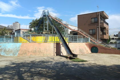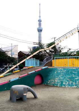 京 島 南 公 園(マンモス公園) 高さ約10mの巨大なすべり台を備えるマンモス公園で、 1963年に作られた区立の公園です。面積1596平方 メートルの広場に様々な遊具が点在しています 所 在 / 東京都墨田区京島2-20-17 |