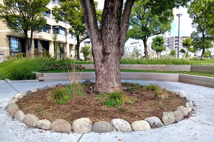 あ ず ま 百 樹 園 円形の噴水池を囲むように野鳥が好む実をつける木々が 数多く植えられています。 住 所 / 東京都墨田区文花1-19 |