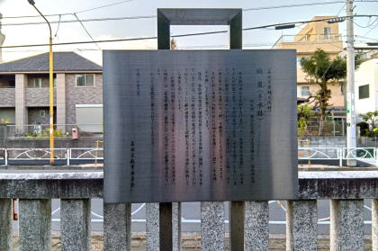 ![]() 小 村 井 梅 園 の 由 来 小村井梅園は江戸時代に作られ、当時の名所案内にも数多く紹介された江戸近郊の 梅の名所です。香取神社の東側に位置し、小村井字出戸五百十一番に三千三百坪の 広さを持ち、切絵図には「梅屋敷名主小山孫左衛門 年毎御成有」と記され、毎年 梅花の盛りには将軍家の御成りがあり、御成り梅の名も残っていました。紅梅白梅 と姿良く、また老樹も多く、大きな実も穫れました。園内には、築山や池に多くの 名石が組まれ、東西に亙り松の大木が二列に並び立ち、鴨・鷺など多くの鳥が飛び 交い、利根川の魚を畜った釣堀もあり、花菖蒲に秋の七草と、多くの人で賑わいました。 安藤広重の「絵本江戸土産」の錦絵には「小村井は亀戸より四、五町巽の方に在り 此の所に香取の社あり その傍梅園ありて満開の節は薫風馥郁として行人の鼻を穿つ 実に新古の梅屋敷にも倍したる勝景・・・・・」と記されています。惜しくも明治四十 三年の大水で廃園となりました。面影を忍び、此處にその由来を記して記念とします。 平成二年九月吉日 平成二年度 世話人 |