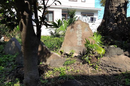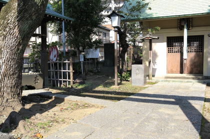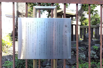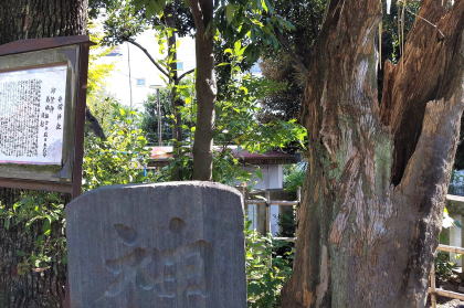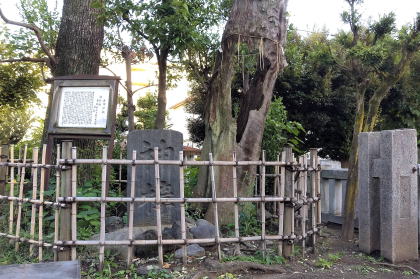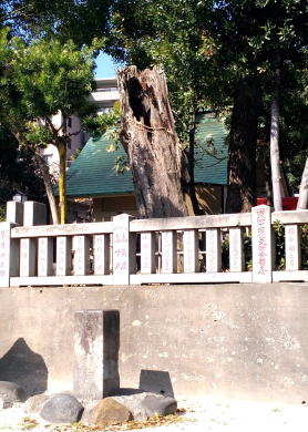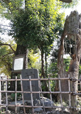 吾 嬬 神 社 (連理の楠) 日本武尊とその 妃弟橘媛 ゆかりの伝承を持つ神社で、連理の楠は竹垣で囲 まれ、しめ縄がかけられています。連理とは一つ の根から2 つの幹が出たもので、大正年間に枯死 してしまい、枯れた根と一部の幹のみが残ってい ます。日本武尊が走水で海に身を投じた后・弟橘 媛の霊を鎮め、食事をした後に箸を地に刺したも のが連理の楠に成長したといい、瑞兆、神木として 崇めるようになったそうです。江戸七森めぐりや 太田道灌七稲荷めぐりの一つだそうです。 住 所 / 東京都墨田区立花1-1-15 |