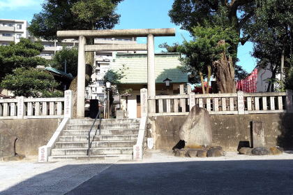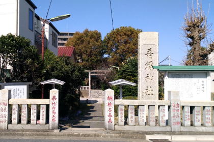 白 髭 神 社 (立花) 葛飾郡葛西川村の鎮守で社伝によれば、天和2年(1682) 当時の庄屋であった鹿倉吉兵衛と関口一郎治が幕府の 許可を得て勧請したといわれています。昭和19年(1944) 村社に昇格。現在の本殿は大正12年(1923)、幣拝殿は 昭和46年(1971)の造営である。社殿左手にある明神 鳥居は安永9年(1780)に寄進されたもの。墨田区内で も最古に属し、区の登録有形文化財に指定されている。 住 所 / 東京都墨田区立花6-19-17 |