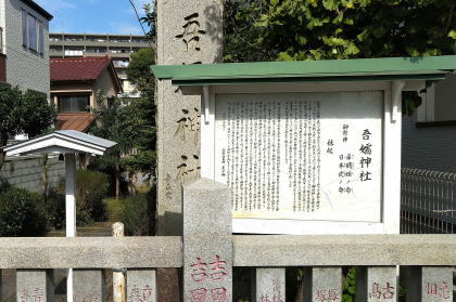 ![]() 吾 嬬 神 社 御祭神 弟橘姫ノ命 日本武ノ命 縁 起 往時は吾嬬の森八丁四方と云はれまた浮洲の森とも呼ばれこんもりと茂った森林の 神域にあった名社である草創は遠く景行天皇(十二代)の頃にさかのぼり御祭神は 弟橘姫ノ命を主神とし日本武ノ尊を御合祀奉斉してあります。正治元年(一一九九) 北条泰時が幕下の遠山丹波守らに命じて神領三百貫を寄進し社殿を造営した嘉元 元年(一三〇三)開創の真言宗宝蓮寺現亀戸四丁目を別当寺とし吾嬬大権現と称した 以後武家の尊宗があって安永三年(一七七四)大川橋の新設にあたり江戸から当社え の参道にあたるところから橋名を吾妻橋と称したともいい明治二十一年に数村を合 せて吾妻村と称したのは時の府知事高橋五代の発案で社名をとったのである。抑当社 御神橘は昔時日本武ノ命東夷征伐の御時相模の国に御進向上総の国に到り給はん と御船に召されたるに海中にて暴風しきりに起り来て御船すでに危ふかりしに御右 橘姫の命海神の心を知りて御身を海底に沈め給かしかば忽海上おだやかに鎮りたり 時に一つの島忽然と現れ到る心を知りて御船をば浮洲に着けさせ嶋にあがらせ給ひて あ丶吾妻恋しと宣ひしに俄かに東風吹き来りて橘姫ノ命の御召物海上に浮び磯部に た丶寄らせ給ひしかば尊大きに喜ばせ給ひ橘姫ノ命の御召物を則此浮洲に納め築山 をきづき御廟となしたりこれ現在の御本殿の位置なり此時尊は食し給ひし橘の御箸を 以て末代天下平安ならんには此箸忽ち根枝を生じし処葉茂り連理の男木女木となれり 神代より二千有余年の星霜おし移ると云へ共尚梢えの色変らず栄えし処名樹も第二次 大戦の災禍を被り焼け落ちて化石の如き姿で残った其一部を以て賽銭箱を造りご神前 に永く保存される事となった以後御神徳に依る数々の奇瑞を現わし諸人の助けとなり たる神樹を惜みて明治維新百年祭を記念して元木に優る名樹日本語成長を祈念しつつ 二本の若木が植えられた爾来十年余念積成就の兆し現れ日毎に葉茂り枝栄えたりこれ こそ御神木の再生ならんと此由来を御世に伝えんと略してしるす也 平成二十四年十月 江都西葛飾 亀戸郡 七十八歳 老書 樰澤信博 |