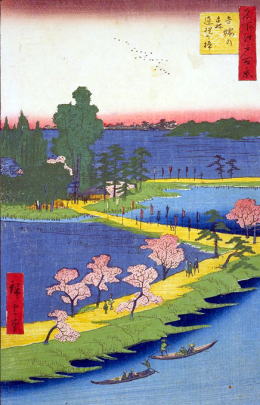 名所江戸百景 吾嬬の森連理の梓 絵師:広重 出版者:魚栄 刊行年:安政3 |
