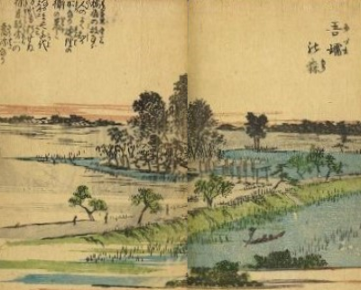 ![]() 絵本江戸土産第十編 吾 嬬 の 森 中央は吾嬬の森、森の中に吾嬬明神(現 吾嬬神社) 右の川は北十間川です。 |