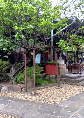 | 鼠取養犬六助塚・孕山堂江雨燈影・江戸桜 〇六助塚 猫よりも鼠を捕るのがうまかった犬の六助の碑。 〇扇子を持ったシルエットが碑になっています。 〇江戸桜の碑 明治29年に9代目市川団十郎が演じた「助六由縁江戸桜」を記念した碑。 ![]() |