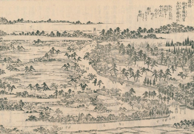 ![]() ![]() 【名 の 由 来】 江戸時代、このあたりから北十間川にいたる一帯は小梅村と呼ばれていました。三囲神社の 縁起によると、弘法大師が投じた一粒の梅がこの付近に落ち、梅香村と呼ばれるようなったと いうのが巷間に伝わる名の由来です。江戸時代後期に鍬形蕙斎が描いた「江戸名所之絵」には 「コムメ」とあり「こんめ」と呼んでいたことがわかります。 【村 の 様 子】 三井家(越後屋)が江戸進出時にその名にあやかって守護神とした三囲神社、天英院(徳川 6代将軍家宣正室)が帰依した常泉寺、水戸徳川家の下屋敷の他、桜の名所の墨堤も近くにあり、 浮世絵にも描かれた有名料亭も周辺に数多くありました。 文人墨客たちが集い、俳人の小林一茶は「水鳥の住こなしたり小梅筋」 「鍬のえに鶯鳴くや 小梅村」と詠み、浮世絵師の歌川広重は「名所江戸百景」や「江戸高名会亭尽」で、当時の情景を 巧みに描いています。 |