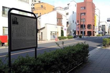![]() 森 鴎 外 住 居 跡 所在地 向島3丁目37番・38番 文久2年(1862)に現在の島根県津和野町に生まれた森鴎外(本名林太郎)は、明治5年(1872) 10歳の時に父静男に随い上京しました。初めに向島小梅村の旧津和野藩主亀井家下屋敷、 翌月からは屋敷近くの小梅村87番の借家で暮らすようになり、翌年上京した家族と共に 3年後には小梅村237番にあった300坪の隠居所を購入して移り住みました。茅葺の家の門 から玄関までの間には大きな芭蕉があり、鴎外が毛筆で写生したという庭は萱松や梅、 楓などが植えられた情緒的で凝った造りでした。この向島の家のことを森家では 「曳舟通りの家」と呼び、千住に転居する明治12ねんまで暮らしました。父の意志 で学業に専念する道をつけられた鷗外は、上京2か月後には西周宅に下宿して進文学社 でドイツ語を学ぶ日々を過ごし、東京医学校予科(現東京大学医学部)に入学しました。 明治9年以後は寄宿舎生活となりましたが、曳舟通り家には毎週帰り、時おり向島の 依田学海邸を訪れて漢学の指導を受けていました。鷗外の代表作『渋江抽斎』には 「わたくしは幼い頃向島小梅村に住んでいた」と記し、弘福寺や常泉寺などがある周辺 の様子や人々についても詳しく書き残しています。また、明治10年代に原稿用紙に用 いたという「牽舟居士」の号は近くを流れていた曳舟川(現在の曳舟川通り)にちなむ ものでした。鷗外にとって、向島小梅村周辺での生活は短いものでしたが、思い出 深い地として記憶にとどめられていたようです。 平成26年2月 墨田区教育委員会 The Site of the Former Residence of Mori Ogai Mori Ogai (born as Mori Rintaro) was one of modern japan's preeminent novelists who also served as a medical officer in the Imperial japaneseArmy. Born un 1862 in the town currently known as Tsuwano in Shimane Prefecture. Ogai accompanied his father Shizuo to Tokyo when he was 10years old. Up until relocating to Senju in 1879 . the Mori Family resided here, when it was still called Koume-Mura. After changing residences twice in Koume-Mura.they finally purchased and settled in a thatched -roof house with a spacious garden. his garden. said to have been the ocject of sketchesby Ogai. was a highly sentimental, sophisticated construction containing the likes of well-trained pine trees, japanese apricots, and maple trees. Thisresidence in Mukojima was called “the house on Hikifune-dori” by the Mori Family. In accordance with the will of his father, Ogai was placed on a path of academic learning. Two months after coming to Tokyo.he boarded at the home of renowned philosopher Nishi Amame to receive tutoring in German in a“Shinbungakusha”, and subsequently enrolled in what is now the Faculty of Medicien at the Univesity of Tokyo. Through he went on to live a boarding student life in this fashion, he would return to “the house onHikifune-Dori” every week, and would occasionally undergo instruction in the Chinese classics at the home of Sinology scholar Yoda Gakkai in Mukojima. In one of his leading works “Shibue Chusai,” Ogai left detailed passages egarding the people and world that surrounder him, writing, “when I was little, I Ilived in Mukojima's Koume-Mura .” Of additional note is that the penname “Hikifune Koji”that Ogai used during the second decade of the Meiji Period comes from “Hikifunegawa (now Hikifunegawa-dori), the river that flowed close to his home. While the time in his life that hespent around Mukojima's Koume- Mura was hort, one can see just how deeply that place resonated in his memory. |