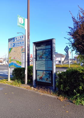 葛飾北斎案内板⑨ 隅田川関屋の里 ━富嶽三十六景 ━ Thirty-six Views of Mount Fuji: Sumida-gawa Sekiya no Sato 現在の墨田区堤通2丁目から足立区千住曙町、 千住関谷町のあたりが描かれています。 住 所 / 東京都墨田区堤通2-7(墨堤通り沿い) |