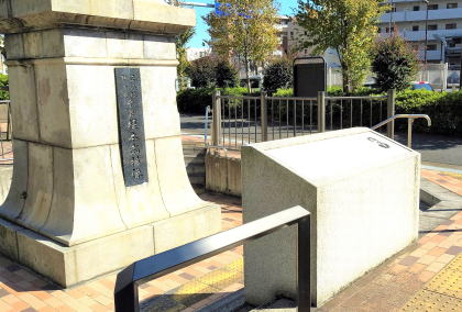 鐘ヶ淵陸橋碑モニュメント 「鐘ヶ淵」の地名の由来となった伝説と、広重の浮世絵 「名所江戸百景」を題材にした2つのモニュメントです。 北側の碑は地名の由来となった「鐘ヶ淵」の沈鐘伝説が 記されています。徳川吉宗が沈んだ鐘を引き上げようと したが、鐘が再び沈んでしまうという伝説です。 南側の碑は歌川広重が描いた「木母寺内川御前栽畑」 のレリーフが施されています。 住 所 / 東京都墨田区堤通2丁目 8 |