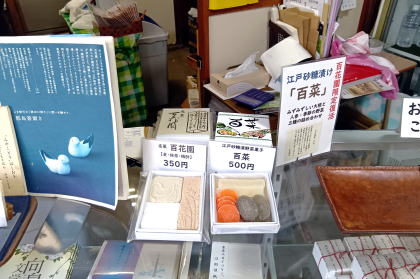 ![]() 梅干し「寿星梅」器付き ¥1,200 園祖 佐原きくうが梅樹三百数十本を植え、「梅は百花にさきがけて咲く」と酒井抱一が 名づけられたといわれる百花園。その中の老樹を徳川田安候が、隅田川七福神の福禄寿尊 にちなみ「寿星梅」と命名され、また、園内で採れる梅干しも「寿星梅」の商標でお土産 といたしておりました。昔の味を今に小梅をご賞味ください。 文 化 元 年 開 園 向 島 百 花 園 茶 亭 さはら ![]() 都 鳥 土 鈴 ¥850 東窯では、乃木大将も自作の酒器を焼き、百花園のひとときを楽しんでいたと言われています。 東窯の素焼でもう一品お土産を作りました。都鳥の素焼きに絵を施した土鈴です。涼やかな 音色は懐かしさと共に、百花園の思い出を何時までも蘇らせてくれることと思います。 ![]() 都鳥箸置き(隅田川焼きレプリカ) 2羽一組 ¥850 百花園には、戦前まで「東窯」という窯があり、隅田川の土でお土産として 都鳥の箸置きや香炉などの焼き物を作ったり、現在で言う楽焼きがおこなわれていました。 お土産の「都鳥箸置き」は、当時のものを型どり、つがいで寄り添う可愛い姿が評判となって おります。ご両親へのお土産、結婚のお祝いや引き出物にもご好評をいただいております。 ![]() 名菓百花園 麦こがし.抹茶.落花生 ¥300 戦災からの復興を記念してつくられた、麦・抹茶・南京豆の三色の落雁です。麦には、 お月見の会を表す「ススキと月」、挽き茶には、源氏香の中から「鈴虫」を借り 「虫の音を聴く会」を、南京豆には隅田川を象徴する「都鳥」がデザインされています。