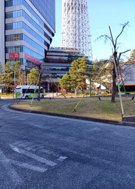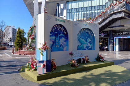 押上駅〈スカイツリー前〉前広場 東京スカイツリーの玄関口として整備された、開放感あふれる 駅前広場。バス・タクシー乗り場が集約され、観光や日常の 移動拠点として多くの人に利用されています。広場中央には 緑地と植栽が配置され、近代的な街並みの中にやすらぎの 空間を演出。見上げれば東京スカイツリーの雄姿が間近に感 じられ、旅の始まりや待ち合わせにも最適なスポットです。 昼はにぎわい、夕暮れ時には街灯とスカイツリーの光が 美しく映える、押上の“街の顔”ともいえる場所です。 住 所 / 東京都墨田区押上1-1-6 |
