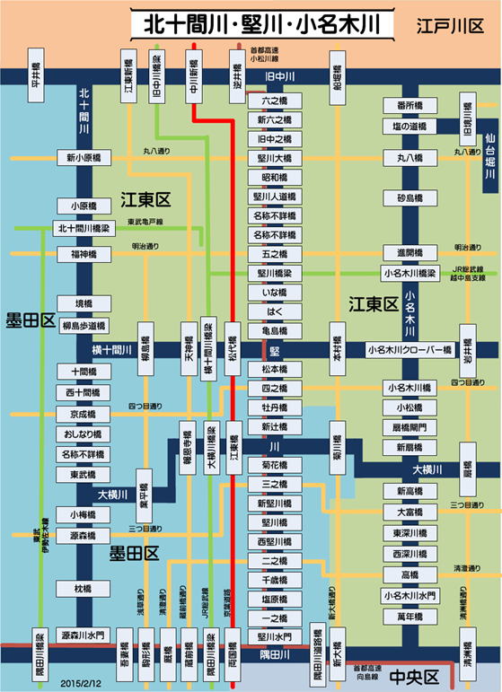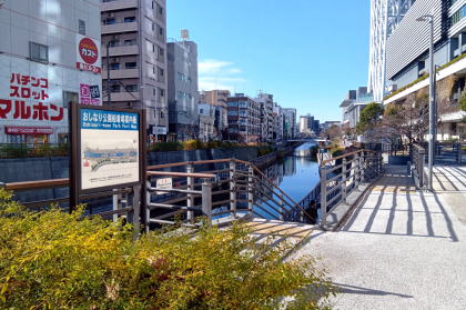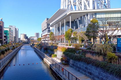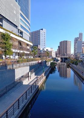 北十間川(きたじゅっけんがわ) 東京スカイツリーの足元を流れ、隅田川と旧中川を結ぶ約3.2km の一級河川(運河)です。江戸時代初期に本所開発のために開削 され、「本所の北を流れる」「川幅が十間(約18m)ある」こと に由来します。水運や灌漑に利用され、現在は親水テラスや遊歩道 が整備され、ハゼ釣りや散歩、スカイツリーとの景観が楽しめる 憩いの場となっています。 住 所 / 東京都墨田区業平1-19付近 |