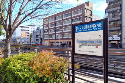 おしなり公園船着き場案内版 おしなり公園は、都心の喧騒から離れ、自然の美しさと静けさを 楽しめる場所です。公園内の船着き場では、遊覧船が停泊します。 ここからは、都心の高層ビル群を背景に、水上の風景を楽しむ ことができます。また、船着き場周辺にはベンチもあり、川風 を感じながらリラックスしたひとときを過ごせます。 住 所 / 東京都墨田区業平1-19付近 |