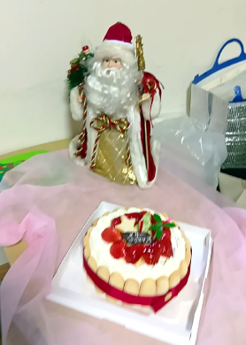 | 天然の材料で作られた出来立てのデコレーションケーキです! 嬉しくて曳舟駅近くのLE PETIT PARISIEN (ルプチパリジャン) さんで記念撮影をしました。 |