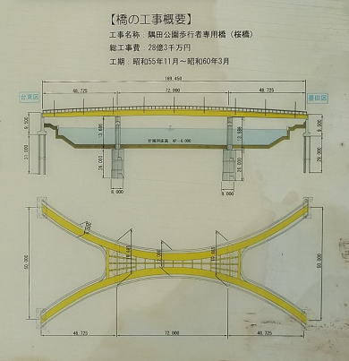 隅田公園 散策解説板5 桜橋とポトマック帰りの桜 ワシントンからの贈り物 Sakura Bridge and cherry trees back from Potomac-as a present from Washington D.C 台東区と墨田区は隅田川を挟んで相対していることから、昭和52年に姉妹区協定を結びました。この記念 事業として、両区にまたがる隅田公園に歩行者専用の橋を架けることを計画し、昭和60年に桜橋が完成し ました。この架橋に際して、アメリカ合衆国ワシントンD.C.より桜がとどきました。ワシントンD.C.の ポトマック河畔の桜並木は世界の名所のひとつになっています。この桜は明治末期頃、当時のタフト大統領 夫人が東京を訪れた際に向島の桜に魅せられ、是非ワシントンに植えたいという希望に対して、当時の尾崎 行雄東京市長がプレゼントしたものです。約70年の時を経て、その桜の子孫が再び向島の地に戻ってきました。 In 1977 (Showa 52), Taito-city and Sumida-city made a sister-city agreement since they are facing over the Sumida River. As a commemoration project, construction of a bridge for pedestrians along Sumida Park as planned and “Sakura Bridge”was completed.In constructing this bridge, some cherry trees were sent from Washington D.C. The cherry trees of Potomac riverside of Washington D.C. is one of th cherry blossom in Mukojima, and hoped to plant cherry trees in Washington D.C. In response to her wish Mayer of Tokyo city, Yukio Ozaki presented it to Washington D.C. After about 70 years, the posterity of cherry trees has returned to the ground in Mukojima. |
