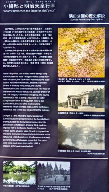 小梅邸と明治天皇行幸 “Koume Residence and Emperor Meiji’s Visit” 隅田公園の歴史解説 Sumda Park History Description