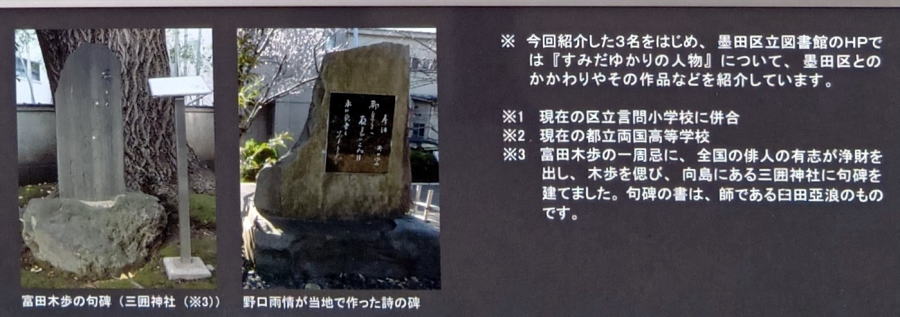 向島界隈に暮らした文人たち “The writers who lived in the Mukoujima area” 隅田公園の歴史解説 Sumida Park History Descnption