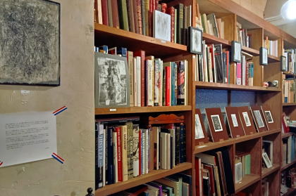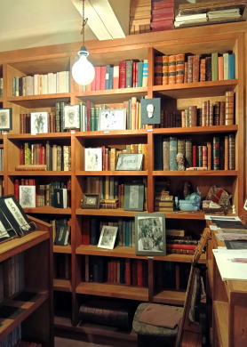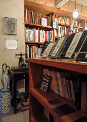 ![]() 今 昔 ま ち 話 深沢七郎の夢屋(東京・東向島) 今はユニークな「書斎」に 「楢山節考」で知られる作家、深沢七郎(1914~87年)が一時、東京都墨田区東向島で 今川焼き屋を営んでいたエピソードは有名だ。埼玉県にひらいた「ラブミー農場」が暇 な時期の道楽だったが、「夢屋」と名づけた店は、深沢自身が驚くほど繁盛した。店の あった建物は東武鉄道曳舟駅近くに現存。かつて深沢が立ち働いた1階の一室は、珍しい 古書などが訪れる人を楽しませるユニークな空間に変わっている。今の部屋のあるじは 石川順一さん(34)。本の装丁や、持ち主を示すため、本に貼られた「蔵書票」の研究家だ。 古い時代の装丁や、蔵書票の魅力を伝えたいと、自身の書斎も兼ねるこの部屋を 「ルプチパリジヤン」の名で2014年から公開した。今の日本で蔵書票を目にしたことが ある人は少ないだろう。石川さんによると、欧州発祥の蔵書票は明治期に日本にも伝 わった。しかし日本はハンコ文化の国。本には蔵書印を押す習慣がすでにあり、蔵書票 は普及しなかった。一方欧州では、蔵書票の歴史は15世紀のドイツまでさかのぼる。 当時本は希少で、持つことはステータスでもあった。そこで君主、貴族らが紋章や家訓 を描いた蔵書票を表紙の裏に貼る風習が生まれた。やがて庶民に広がり、版画やリトグラフ の使用もあってデザインが多様化。19世紀には小さな版画として単体で鑑賞されるまでに なったという。このころまでは本の装丁もオーダーメード。読むだけでなく、本棚を飾る インテリアの意味があった。石川さんは十数年前、洋古書店で偶然手にした総皮で装丁さ れた本に魅入られ、「モノとしての本」の研究にのめり込んだ。今は蔵書票の歴史を 「とことん調べる」のが目標だが、簡単な蔵書票を作る一般向けの教室や、深沢に ちなんだイベントを開いたこともある。知人の紹介で入居したこの部屋に、夢屋が あったことは近所の人に教えられて初めて知ったという。文学史に名を残す作家の店 とデジタル時代の異空間のような「書斎」。たたずまいは全く違うが、どちらも本 にゆかりがあるところに不思議な縁を感じる。 (中丸亮夫) |