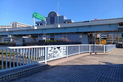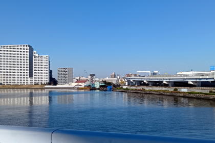 ![]() 防災団地のビルの下の先に水神大橋があります |