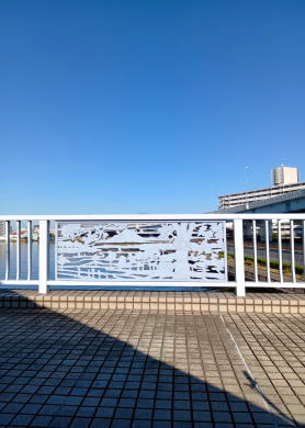 鐘ヶ淵陸橋碑モニュメント 「鐘ヶ淵」の地名の由来となった伝説と、広重の浮世絵 「名所江戸百景」を題材にした2つのモニュメントです。 北側の碑は地名の由来となった「鐘ヶ淵」の沈鐘伝説が 記されています。徳川吉宗が沈んだ鐘を引き上げようと したが、鐘が再び沈んでしまうという伝説です。 南側の碑は歌川広重が描いた「木母寺内川御前栽畑」 のレリーフが施されています。 住 所 / 東京都墨田区堤通2丁目 8 |