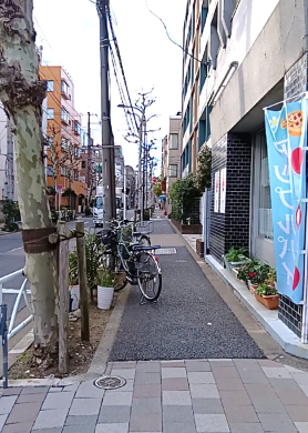 | 進行方向1~2分のところに押上びりーぶレンタル スタジオ&ピアノサロンがあり、その先前方右側 にカフェチョコプリンがあります。 |