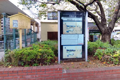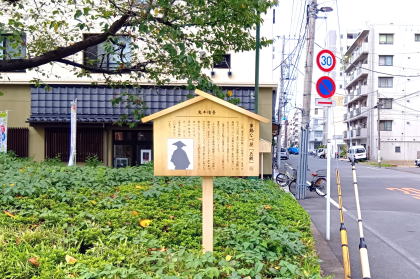 江 戸 の 町 伊 藤 宗 印 屋 敷 跡 明治12年(1879)に十一世微塵を襲位した八代 伊藤宗印が住んでいました。 京葉道路沿いの両国亭の前に立っています。 住 所 / 東京都墨田区両国4-30-4 |