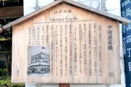 小説「鬼平犯科帳」に登場する本所二ツ目の軍鶏 なべ屋「五鉄」は、鬼平の行きつけの店で、 日本 橋人形町で1760年から続く老舗鶏料理店玉ひでが モデルといわれています 中田屋茶舗の前にあります。 所 在 / 東京都墨田区両国4-1-12 |