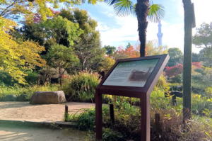 ![]() ![]() 桑 の 茶 屋 跡 (The remain of Kuwa-no-Chaya) ここには、明治時代に上野の博覧会 で使用した二階建ての建物があり、 桑の木で作られていたことから 「桑の茶屋」と呼ばれていました。 しかしながら、昭和20年(1945年)3月 の東京大空襲で百花園が壊滅的な打 撃をうけた時に、桑の茶屋は取り壊 されました。唯一建物に使用されて いた欄干が御成座敷に残っています。 現在は、建物があった当初の面影は 縁石に残っているのみとなりますが 、園内における一番高い地形から眺 める水辺の景色が当時を偲ばせます。 参考:江戸の花屋敷 There was a building called “Kuwa- no- Chaya” used for the National industrial exhibition held by Meiji era in Ueno. However, Mukojima- Hyakkaen Gardens received the destructive blowby the Great Tokyo Air Raid in 1945, and the Kuwa-no-Chaya was pulled dewn |