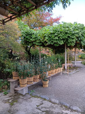 ![]() 白 加 賀(しろかが) 実ウメ 古くから知られる実梅の品種です。花は一種白色大輪。果実は大きく、粒もよく揃うのが特徴で、梅干しなど、さまざまな用途に用いられます。 ![]() 冬 至 梅(とうじばい)野梅性 別名『本冬至』。早咲きの 品種で、花は一重で白色です。 盆栽にも向く品種です。 ![]() 思いのまま 野梅性 「輪違い」とも呼ばれ、八重咲 きでその名の通り白色~淡紅色 〜紅色の花を咲き分けます ![]() 紅冬至(こうとうじ)野梅性 淡紅色の一重咲き品種です。 早咲きが特徴で、正月の飾り などにも用いられます。 また、強健で小枝もよく出る ので、盆栽にも向きます。 ![]() 見驚(けんきょう) 野梅性 八重咲き大輪の花を咲かせます。 色は蕾のころ淡紅色で、開花 すると白色に移ります。 性質も強健で、庭木としても 人気があります ![]() 八重寒紅(やえかんこう) 野梅性 紅色の八重咲き品種。 新芽の色も赤いのが特徴です。 早咲きの品種で12月ごろに 開花することもあります。 ![]() 初雁(はつかり) 野梅性 花は一重の白色で、極小輪。極めて早咲きの品種で、 秋になって雁が渡ってくる ころに咲くことが名前の由来 になっています。 ![]() 藤牡丹(ふじぼたん)しだれ 豊後性 淡紅色で大輪八重咲の花を 咲かせる、しだれの品種です。 蕾は紫色です。 ![]() 豊 後(ぶんご) 実ウメ 花は一重で淡紅色、3月中旬に 開花します。果実が特に大きい のが特徴で、梅漬けに向きます ![]() 紅千鳥(べにちどり) 紅梅性 おしべに小さな旗弁(おしべ) の先が花弁化したもの)が出る ことがあります。花は一重咲 きの明るい紅色で、よく目立 ちます ![]() 唐 梅(とうばい) 唐梅性 一重と八重があり、一般的には 八重咲きのものを指します。 花首が長く、下向きに花を つけます。花が咲きすすむと 花弁が白味を帯びます。 ![]() 鴛 鴦(えんおう) 紅梅性 初代・佐原鞠塢の残した 『梅屋花品』に「?梅」として紹介されている1輪の花に2個の実 がなる品種です。八重咲で紅色の花弁には赤い筋が入ります。 ![]() 花 香 実 (はなかみ) 実ウメ 「照水梅」の別名で『梅屋花品』 に記された品種とされます。 花の美しさと実の収穫をともに 楽しめる品種です。後水尾天皇 の命名とも言われます。 ![]() 八つ房梅(やつふさうめ)実ウメ 『梅屋花品』に、1輪の花に8つ の実を結ぶと書かれている品種 です。親鸞が越後の梅護寺に 植えたとされる樹が知られ、越後七不思議の一つとされます。 |