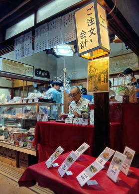 ![]() ![]() 梅干し「寿星梅」器付き ¥1,200 園祖 佐原きくうが梅樹三百数十本を 植え、「梅は百花にさきがけて咲く」 と酒井抱一が名づけられたといわれる 百花園。その中の老樹を徳川田安候 が、隅田川七福神の福禄寿尊にちなみ 「寿星梅」と命名され、また、園内で 採れる梅干しも「寿星梅」の商標でお 土産といたしておりました。昔の味を 今に小梅をご賞味ください。 文 化 元 年 開 園 向 島 百 花 園 茶 亭 さはら ![]() ![]() 都 鳥 土 鈴 ¥850 東窯では、乃木大将も自作の酒器を 焼き、百花園のひとときを楽しんで いたと言われています。 東窯の素焼でもう一品お土産を作り ました。都鳥の素焼きに絵を施した 土鈴です。涼やかな音色は懐かしさ と共に、百花園の思い出を何時まで も蘇らせてくれることと思います。 ![]() 都鳥箸置き(隅田川焼きレプリカ) 2羽一組 ¥850 百花園には、戦前まで「東窯あずまか まど」という窯があり、隅田川の土で お土産として都鳥の箸置きや香炉など の焼き物を作ったり、現在で言う楽焼 きがおこなわれていました。 お土産の「都鳥箸置き」は、当時のも のを型どり、つがいで寄り添う可愛い 姿が評判となっております。ご両親へ のお土産、結婚のお祝いや引き出物に もご好評をいただいております。 ![]() ![]() 名菓百花園 麦こがし.抹茶.落花生 ¥300 戦災からの復興を記念してつくられた、 麦・抹茶・南京豆の三色の落雁です。麦 には、お月見の会を表す「ススキと月」、挽き茶には、源氏香の中から「鈴虫」を借り「虫の音を聴く会」を、南京豆 には隅田川を象徴する「都鳥」がデザ インされています。 ![]() 秋の七草湯飲み¥1,000 /梅花コースター¥320 ![]() 一筆箋 ¥300 ![]() 木版画 宝舟 ¥500 ![]() スカイツリー懐紙 ¥340 ![]() なすがままに~寺島茄子入り餡~ ¥330 |