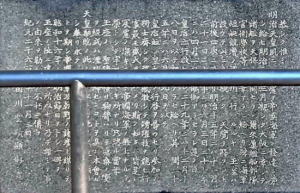 ![]() 隅田公園水戸邸跡由来記 コノ地ハ江戸時代 水戸徳川家ノ 下屋敷 小梅別邸ガ置カレタトコロ デアル徳川御三家ノ一ッデアル 水戸家ガオ浜屋敷 中央区 ニ替エ テコノ地ヲ賜ッタノハ元禄六年 一 六九三年 三代綱條公ノ時デア ル 屋敷ハ 西ハ隅田川ニ面シ南ハ北 十間川ヲ巡ラシ面積オヨソ六万六千 平方メートル 約二万坪 南北二 百メートル余 東西約三百メートル ニワタリ南ニ広ガル梯形ノ地デ 現 在ノ向島一丁目ノホボ大半ヲ占メ 墨田区南部ニ置カレタ大 小名屋敷 八十余ノウチデ最大ノ規模ヲ誇ルモ ノデアッタコノ屋敷ハ 現在後楽園 ノ名ガ残ル小石川本邸 駒込別邸イ ズレモ文京区 ノ控トシテ 従者デ アル蔵奉行 水主 鷹匠ノ住マイナ ドニアテラレマタ西側ニ接シタ一角 ニハオ船蔵ガ置カレ 水戸家所有ノ 船 材木ナドガ保管サレテイタ 弘 化元年 一八四四年烈公トシテ知ラ レル九代斉昭公ガ藩政改革ノ一端カ ラ幕府ノ誤解ヲ招キ駒込別邸デ謹慎 ヲ命ジラレタ際、改革派ノ中心デア リ高名ナ水戸学者デアッタ藤田東湖 ガ責任ノ一班ヲ負イ蟄居ノ日々ヲ送 ッタノモ コノ屋敷内ノ長屋デアッタ ヤガテ明治維新トナリ 十一代昭 武公ノ代ヲ以テ藩制度ハ解消 一時 政府ノ管理スルトコロトナッタモノ ノ 爾後 改メテ水戸家本邸ガ置カ レ 明治八年ニハ 明治天皇 同二 十五年ニハ昭憲皇太后ノゴ訪問ヲ受 ケタ シカシ大正十二年九月 関東 大震災ノ劫火ニヨリ烏有ニ帰シ 二 百三十年ニ及ブ水戸屋敷ノ歴史ハコ コデ閉ジタノデアル昭和六年 帝都 復興計画ニ基ヅキ隅田公園ガ造営サ レルト 水戸邸ノ旧跡ハ同園ニ取リ 入レラレ往時ヲシノブヨスガヲソノ 一角ニトドメ 広ク市民ノ憩イノ場 トナッテイタ シカシソノ後 半 世紀近イ歳月トトモニ環境ハ変化シ マタ第二次大戦ノ戦火ノ被害モアリ ソノ面影モオオカタ失ワレタ昭和 五十年 コノ公園ヲ管理スルコトト ナッタ墨田区ハ 同五十二年区 制施行三十周年ヲ記念シテ改修ニ 着手シ コノタビ昔日ノ風趣ヲ伝エ ル日本風庭園ヲ再現サセタ ココニ カッテノ水戸徳川邸ノ林泉ノ美ガ復 元サレタコトヲ機会トシテ一碑ヲ建 テ イササカコノ地ノ由来ヲ記シ 後世ニ伝エルモノデアル 昭和五十四年四月 |