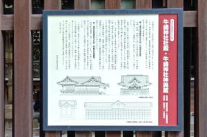 ![]() 牛嶋神社について 牛嶋神社は、もと本所区向島須崎町 に鎮座していたが、関東大震災後昭和 のはじめ、水戸徳川邸跡の現位置に再 建された。当社の縁起書によると貞観 二年(八六〇年)御神託によって須佐之 男命を郷土守護神として創祀し、のち に天之穂日命をまつり、ついで清和天 皇の皇子貞辰親王をお祀りし「王子 権現」と称した。また天文七年(一五 三八年)後奈良院より「牛御前社」と の勅号を賜ったと言われ、隅田川に 沿う旧本所一帯の土地を、むかし「 牛島」と呼んだところから、その鎮 守として明治初年から「牛島神社」 と称するようになった、例祭日九月 十五日は、貞観のむかしはじめて祭 祀を行なった日とされている。治承 四年(一一八〇年)源頼朝が大軍をひ き当地におもむき、豪雨による洪水 に悩まされた時、武将千葉介平常瀧 胤が祈願し、全軍無事を得たところ から、頼朝はその神徳を尊信して社 殿を建立し、多くの神領を寄進した。 江戸時代には鬼門守護の社として将 軍家の崇敬厚く、特に三代将軍家光 は、祭礼神輿渡御の旅所としての土 地を寄進した。現在の本所二丁目の お仮宮がこれである。総桧権現造り 東都屈指の大社殿を誇る牛嶋神社は 、昭和三十二年鎮座千百年祭を執行 、氏子五十余町牛嶋講の守護神とし て崇敬尊信をあつめている。 |