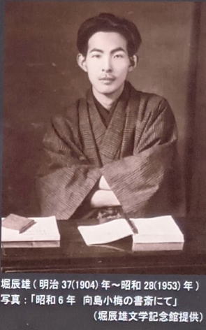 ![]() ![]() 堀辰雄ゆかりの地 現在地 墨田区向島一丁目三番 堀辰雄は明治三十七年 (一九〇四) 、 麹町平河町 (現在の千代田区平河 町)に生まれました。二歳のとき、 母志気(しげ)に連れられ向島小梅町 (現在の向島三丁目)に住む叔母の家 に移りました。その後、明治四十一 年に母が彫金師上條松吉と結婚し、 向島中之郷町三十二番地(左図➀) で 暮らしはじめます。更にその二年後 には大水の影響で新小梅町二ノ四 ( 同②) に移り、ここから牛島尋常小学 校(同A)に通います。府立第三中学校 (現在の都立両国高校) を卒業した辰 雄は、室生犀星の紹介により同校 の先輩である芥川龍之介を知り、文 学的影響を受けます。関東大震災で は九死に一生を得ましたが、母を亡 くしました。大正十三年(一九二四) 四月に父松吉が隅田公園東隣の新小 梅町八番地 (左図③ ) に住居を新築 し、辰雄が結婚して軽井沢へ赴く昭 和十三年一九三八)まで父と共にそこ で暮らしました。辰雄の夫人多恵氏 は随筆「蓮の花 」の中でこの家を懐 かしみ、「あの竹の植わっていた小 さい玄関―辰雄はそんな自分の家を 『雀のお宿』と呼んでいた」と記し ています。人生の過半を向島で過 ごした辰雄は、「墓畔の家」や『幼 年時代』などの作品に、当時の墨堤 や近隣の寺社の様子を記しています 。「寺社の境内の奥まったところに 、赤い涎(よだれ)かけをかけた石の 牛が一ぴき臥(ね)てゐた。私はその どこかメランコリックな目ざしをし た牛が大へん好きだった。」(『幼 年時代』)とあるのは牛嶋神社境内の 撫牛のことです。昭和初期の文学の 傑作として高い評価を受けた『聖家 族』をはじめ、『風立ちぬ』 『美しい村』など愛や生死をテーマ とする作品を残し、昭和二十八年(一 九五三)に没しました。 平成二十三年八月 墨田区教育委員会 |